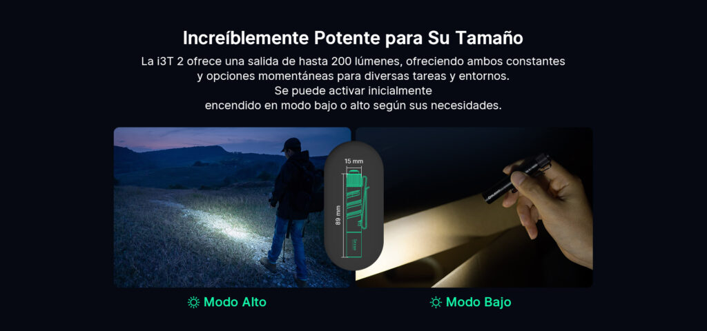 La nueva generación de la linterna EDC Olight i3T 2 mejora notablemente la autonomía de la batería, incrementándola en un 31%, para disfrutar de hasta 21 horas de iluminación continua.